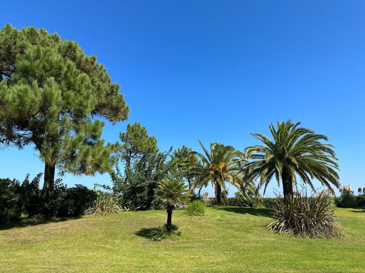 En commun: beau jardin entretenu avec plantes et arbres, champ.