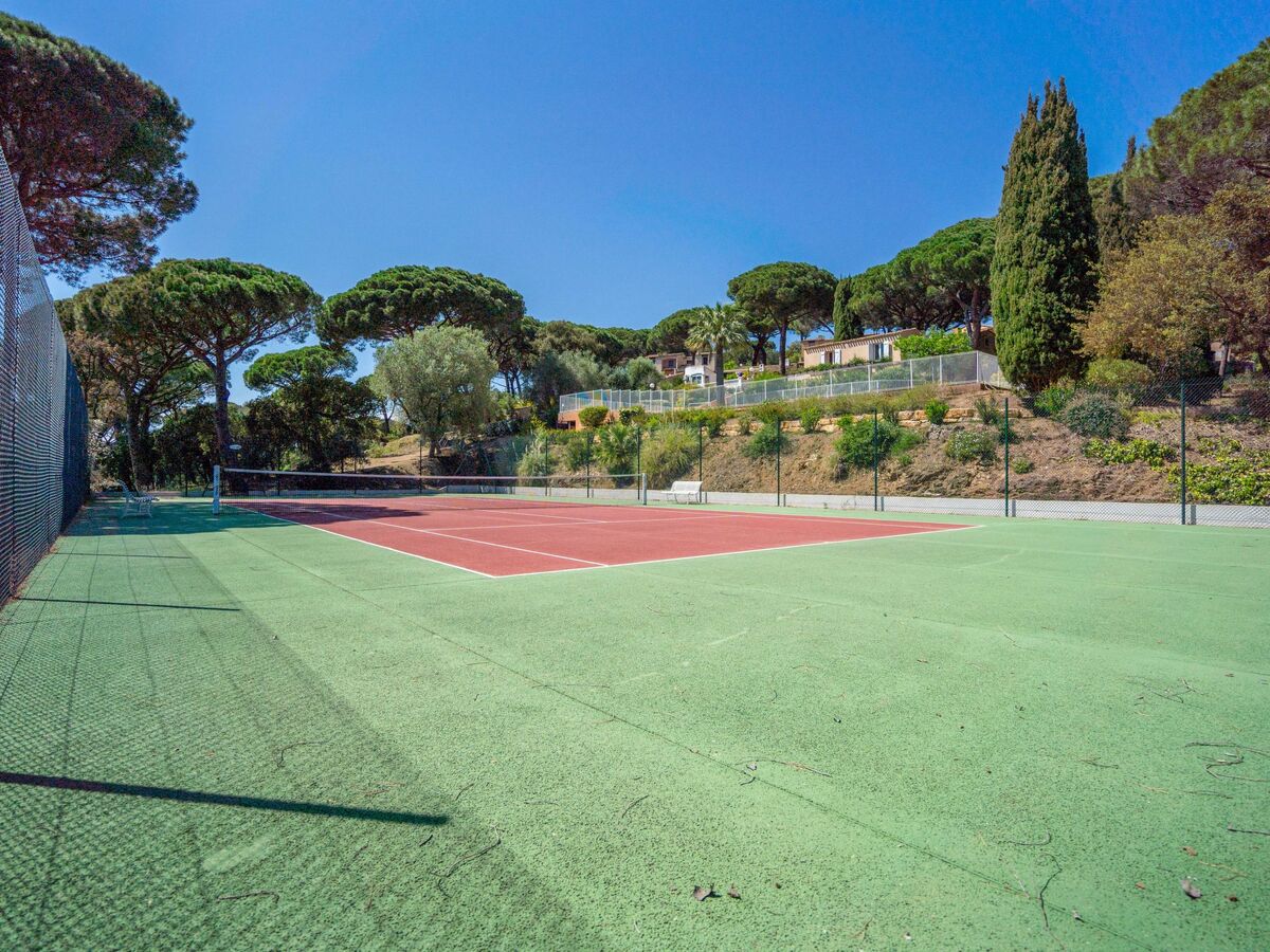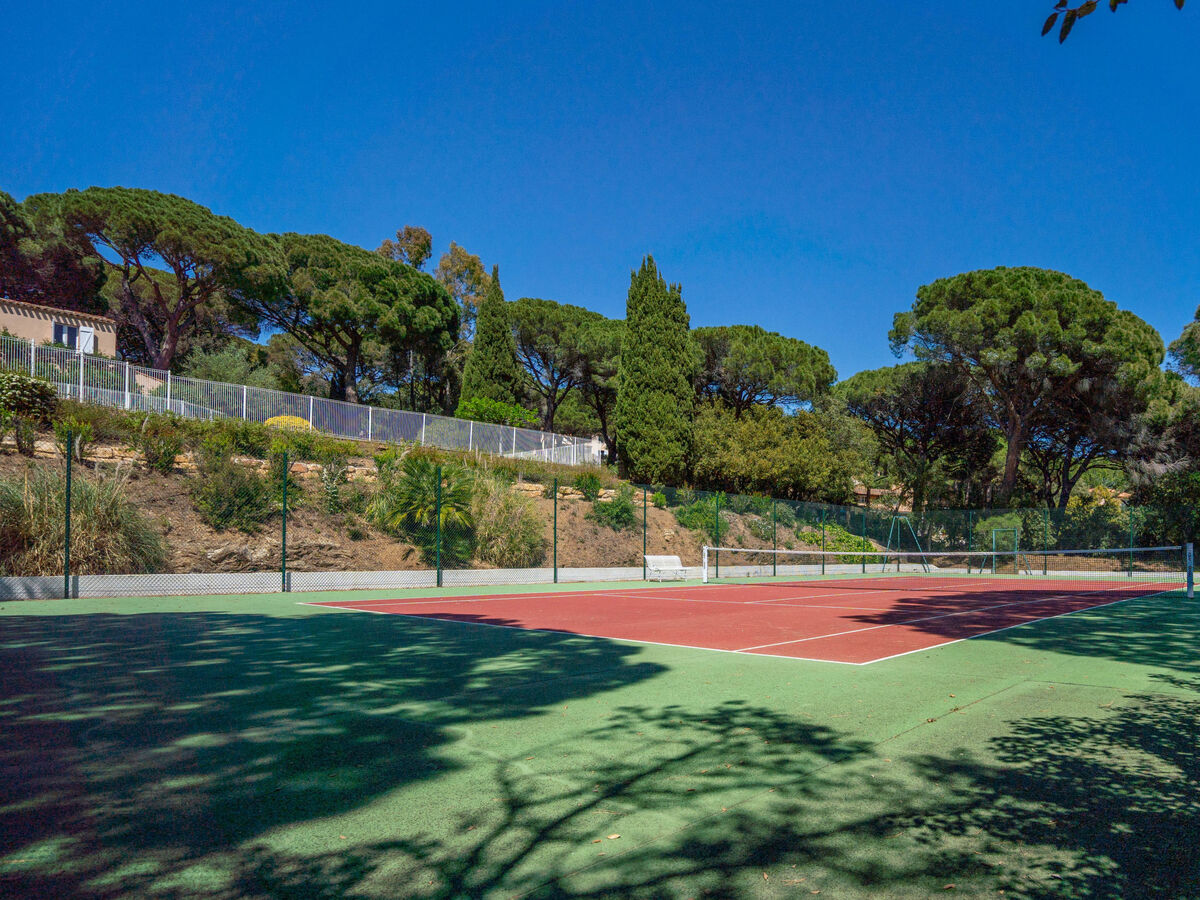 Bassin pour les enfants, tennis, ping-pong, terrain de pétanque, place de parking.