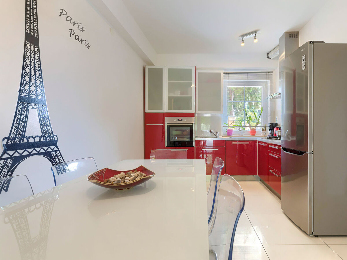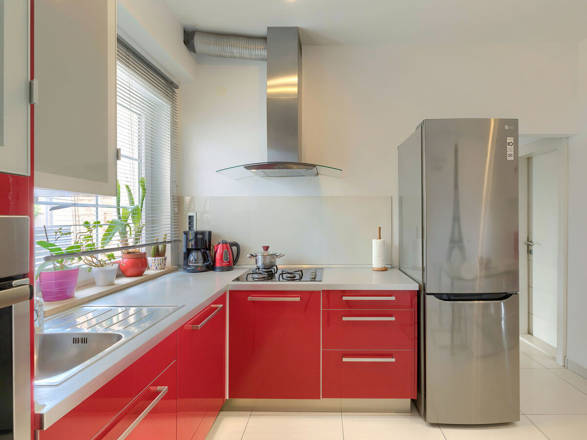 Cuisine ouverte (1 plaque de cuisson, four, lave-vaisselle, 3 feux, grille-pain, bouilloire électrique, micro-ondes, congélateur, cafetière électrique).