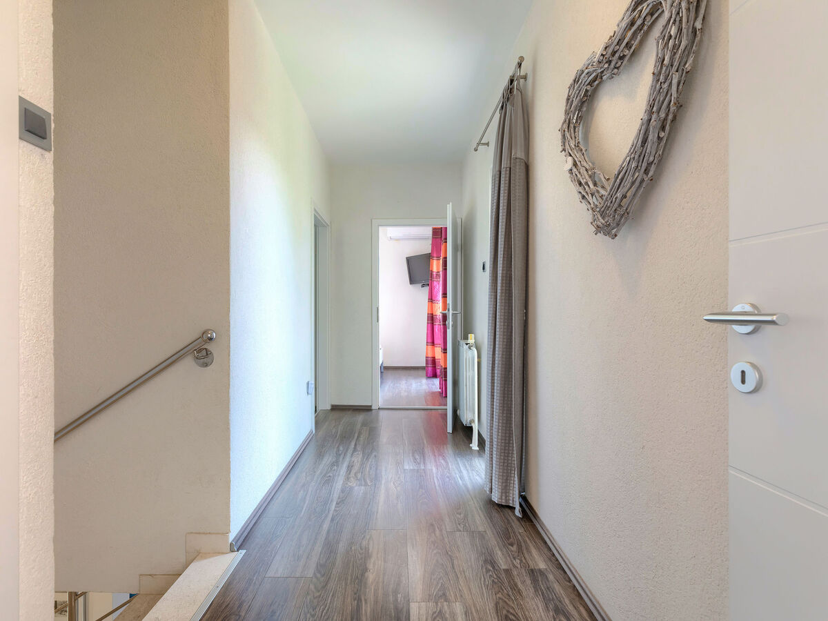 À l'étage supérieur: 1 chambre avec 1 grand-lit (160 cm, longueur 200 cm), TV (satellite) et air-conditionné.