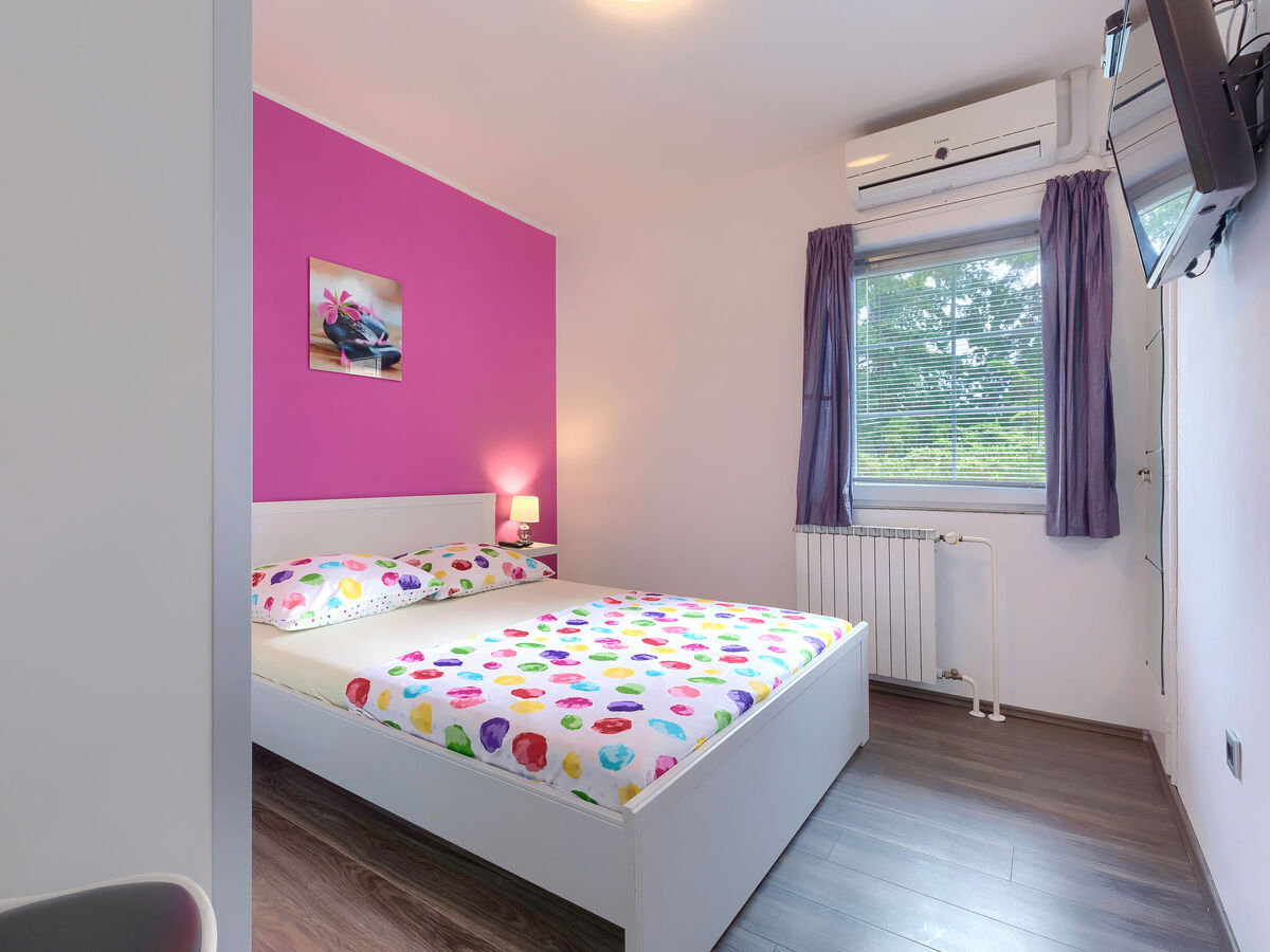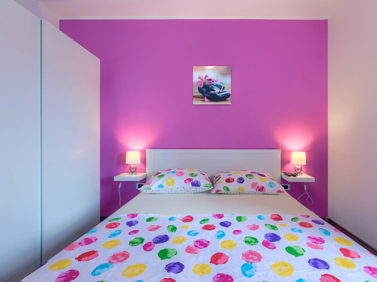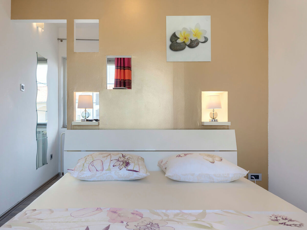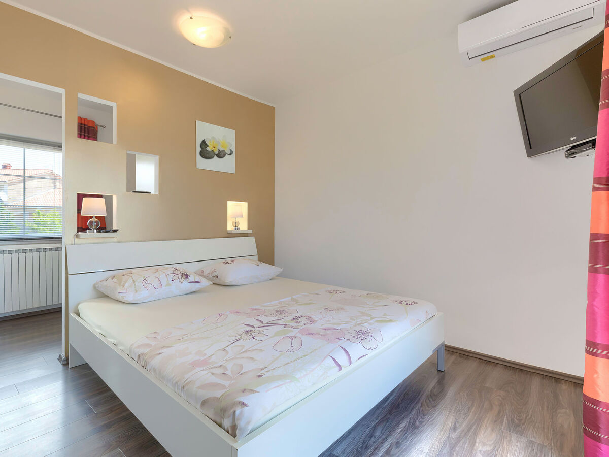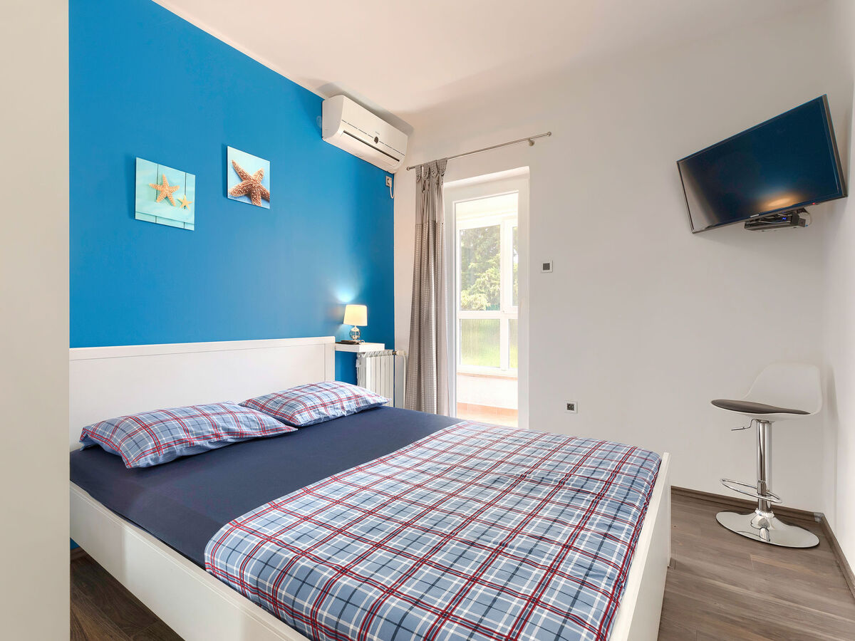 1 chambre avec 1 grand-lit (180 cm, longueur 200 cm), TV (satellite) et air-conditionné.