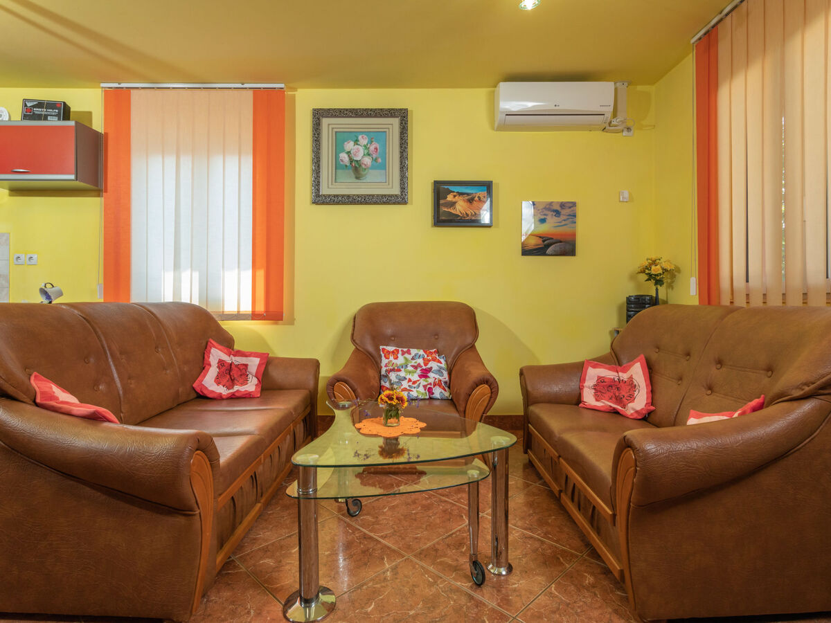 Séjour/salle à manger avec TV (satellite) et air-conditionné.