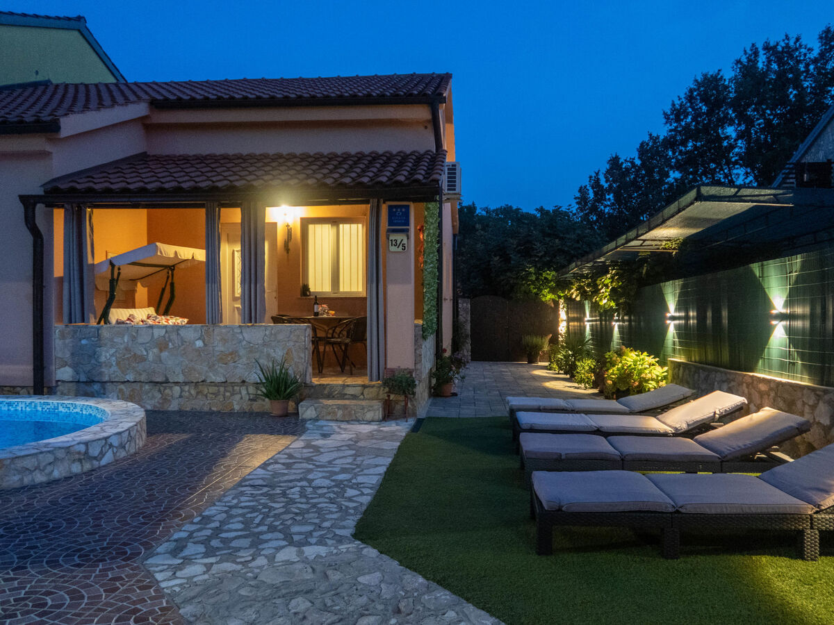 A usage privé: terrain 250 m2 (clôturé), piscine chauffée (5 x 3 m, profondeur 120 cm, disponibilité saisonnière: 15.Mar.
