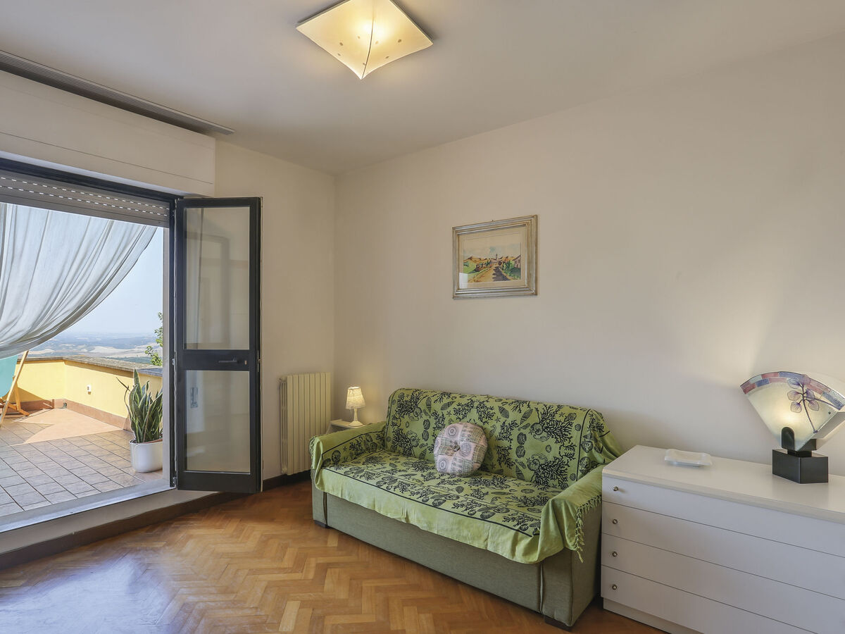 À l'étage supérieur: chambre avec passage ouverte avec 1 divan-lit double.