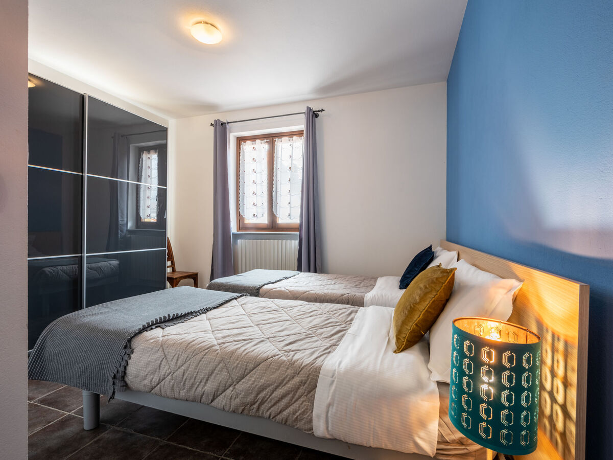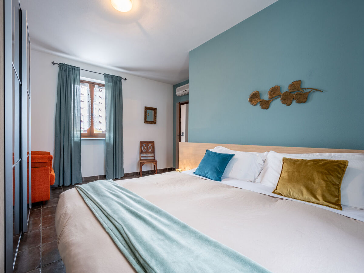 1 chambre avec 1 lit double, douche/WC et air-conditionné.