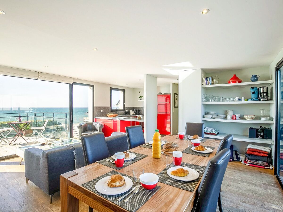 Cuisine ouverte (four, lave-vaisselle, 3 plaques à induction, grille-pain, bouilloire électrique, micro-ondes).