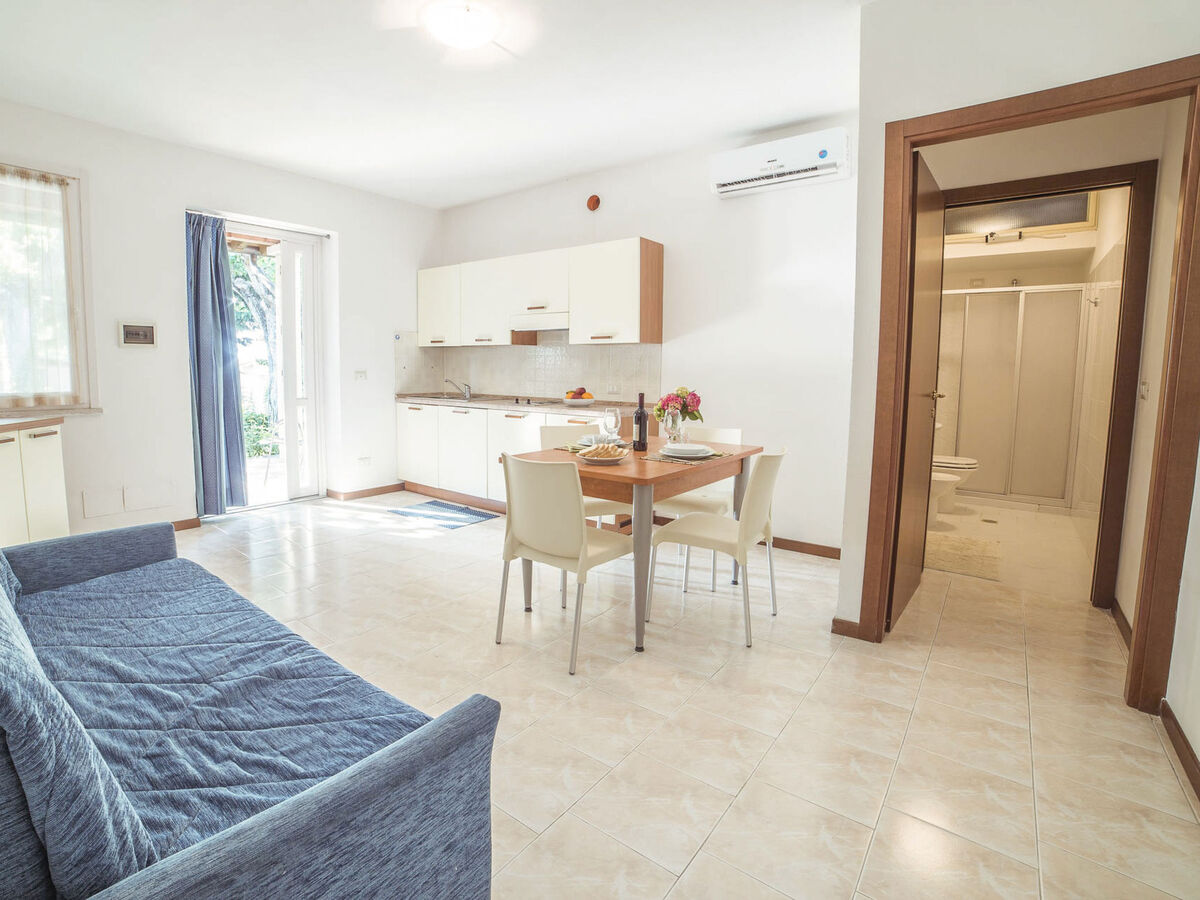 Aménagement confortable: séjour/chambre à coucher avec 1 divan-lit double, table pour les repas, TV (satellite), air-conditionné et chauffage à air chaud.