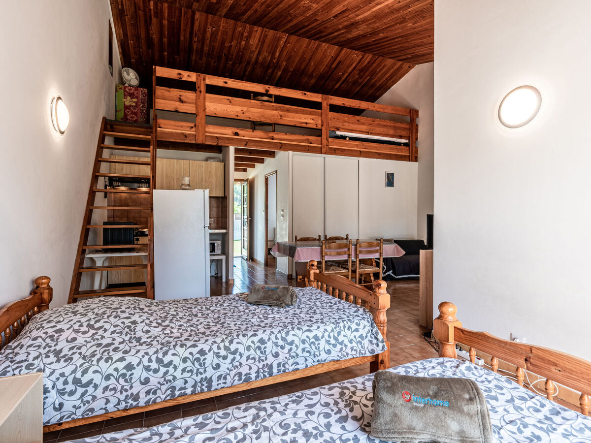À l'étage supérieur: galerie ouverte avec 2 lits.