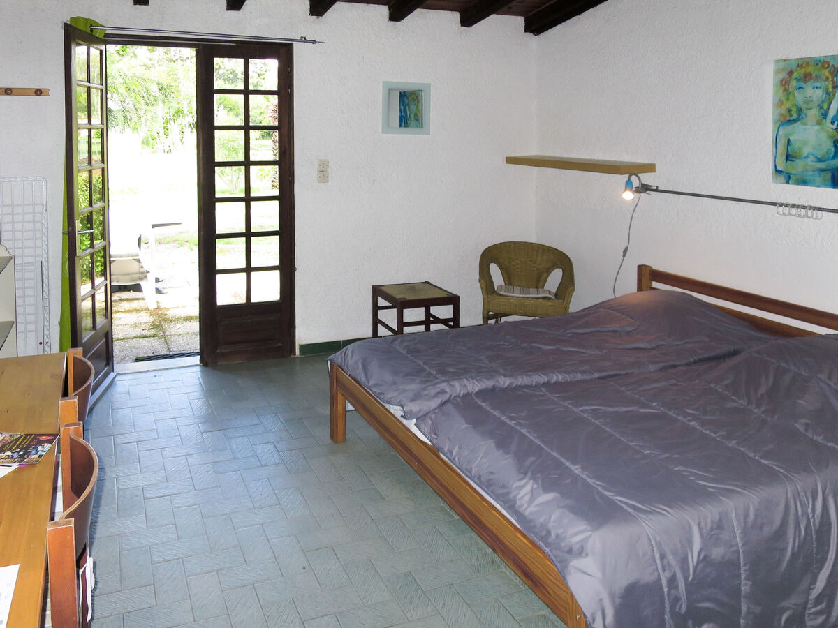 Aménagement fonctionnel: séjour/chambre à coucher avec 1 lit double, table pour les repas, radiateur électrique et air-conditionné.