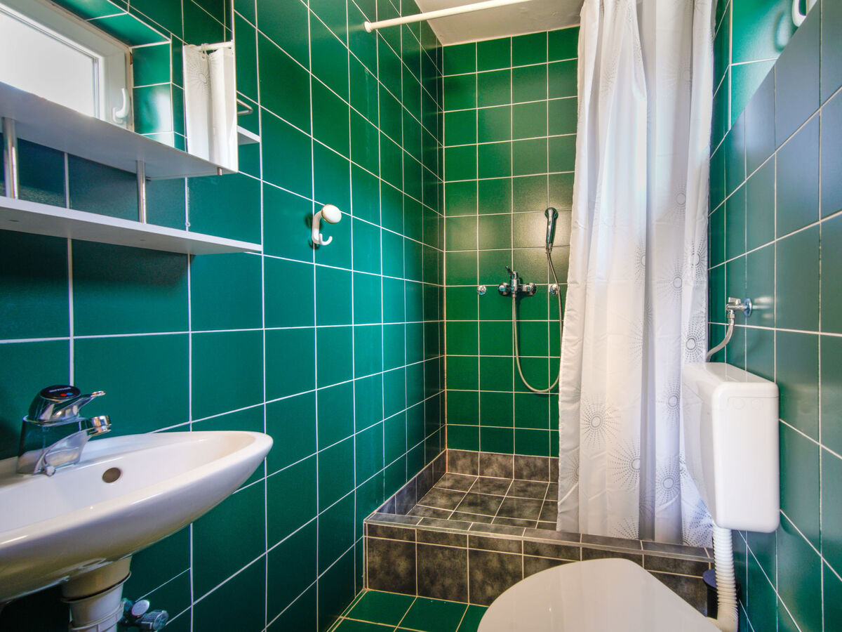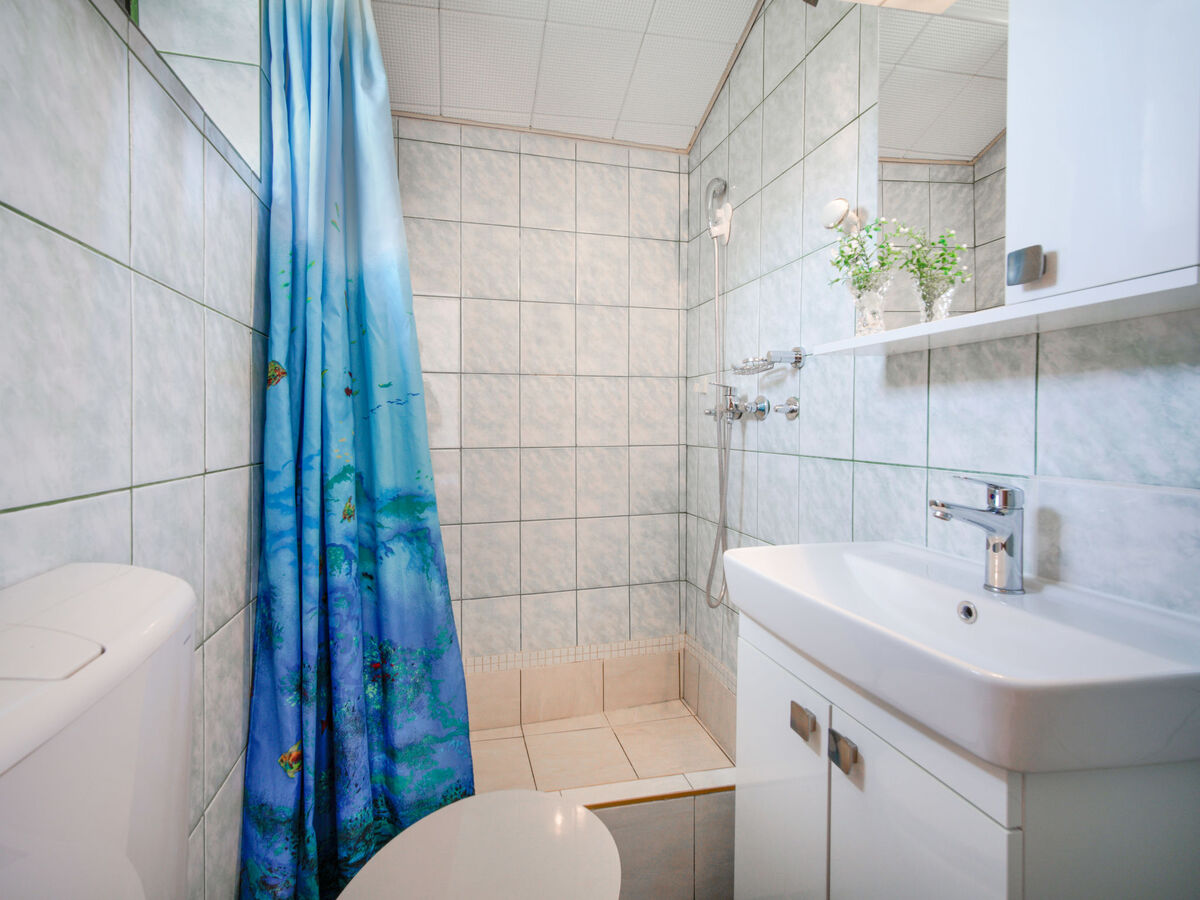 1 chambre avec 2 lits (90 cm, longueur 200 cm), douche/WC.