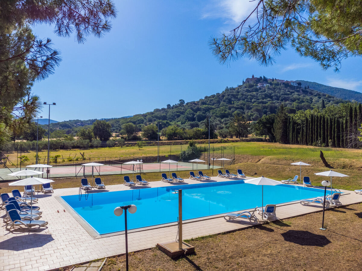 Petit complexe de vacances "Alberguccio Ranch Hotel", environné par les arbres et champs.