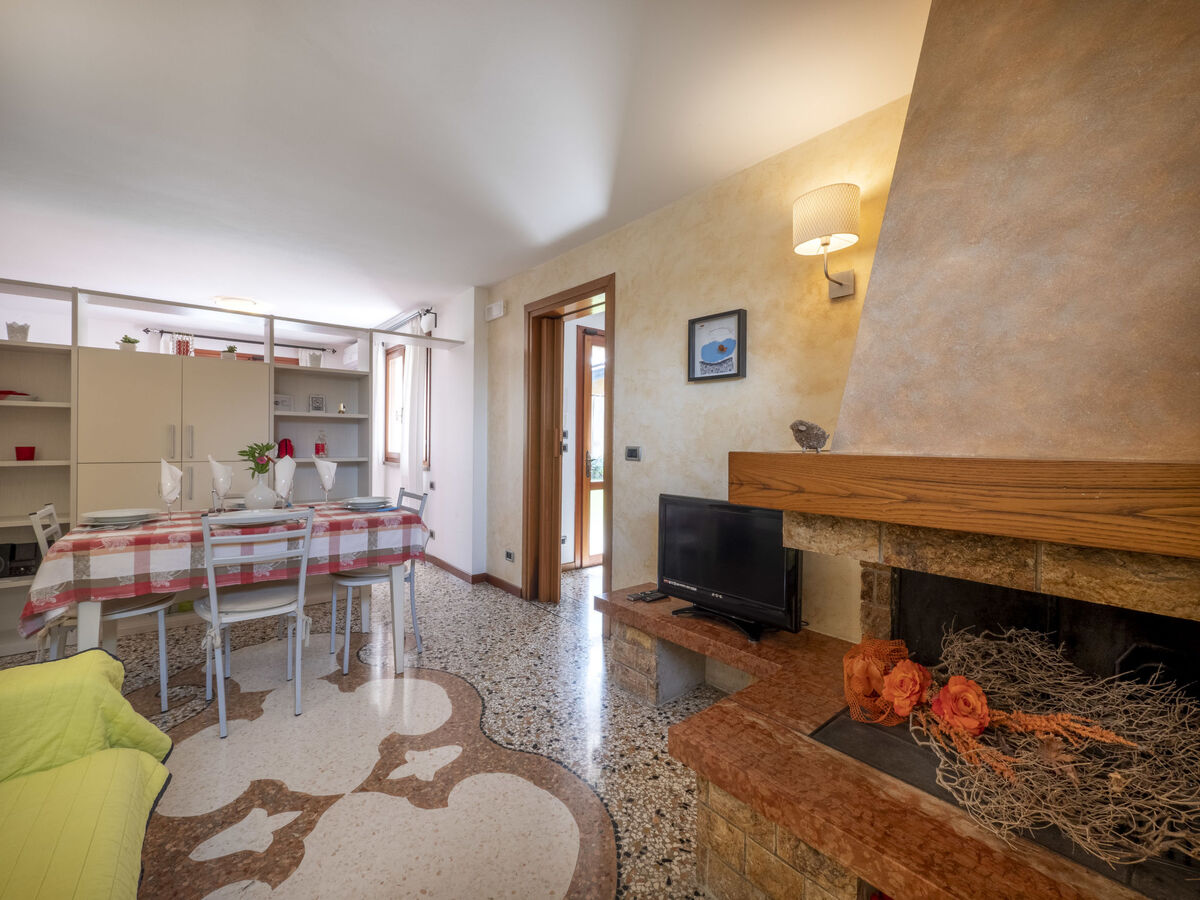 Spacieux, aménagement agréable: séjour avec cheminée, table pour les repas, TV (satellite) et air-conditionné.