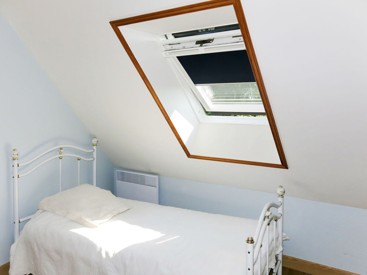1 chambre, mansardée avec 1 grand-lit (140 cm, longueur 190 cm).