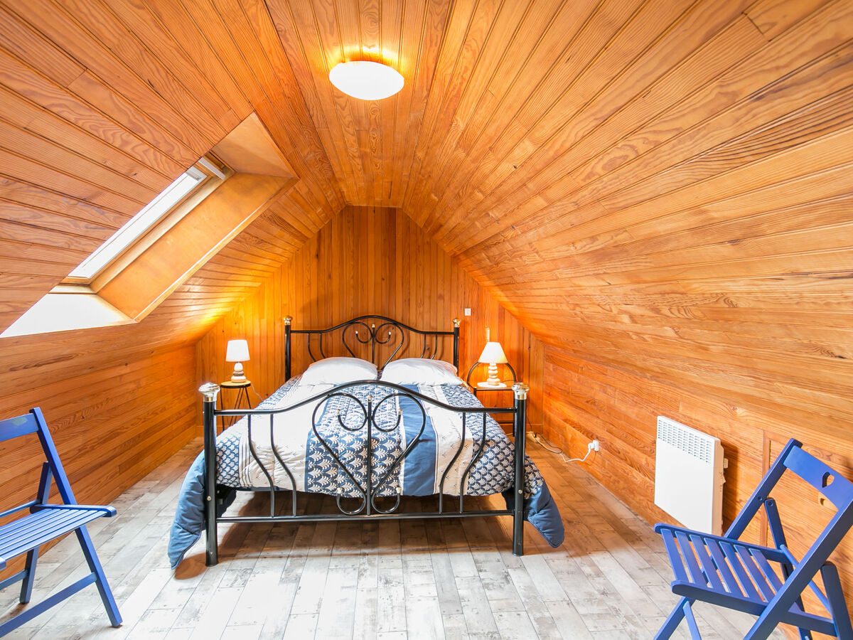 À l'étage supérieur: (escalier raide) 1 chambre, mansardée, ouverte avec 1 grand-lit.