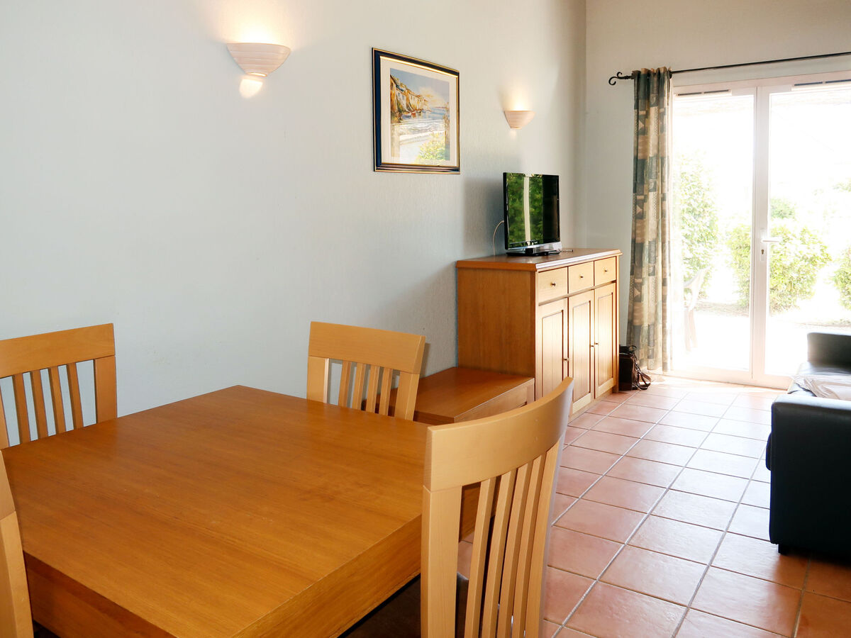 Clair, aménagement agréable et plaisant: séjour/chambre à coucher avec 1 divan-lit double, table pour les repas et TV.