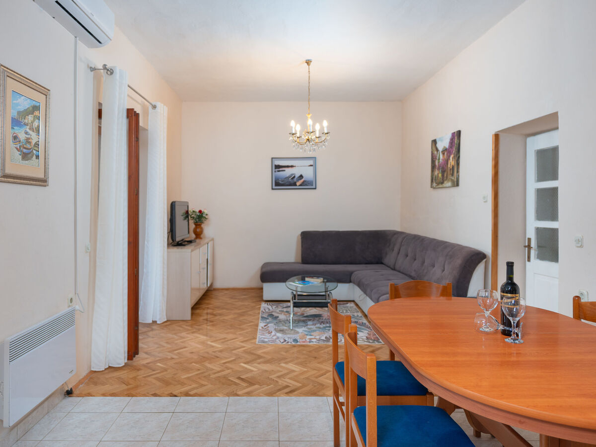 Séjour/salle à manger avec TV (satellite) et air-conditionné.