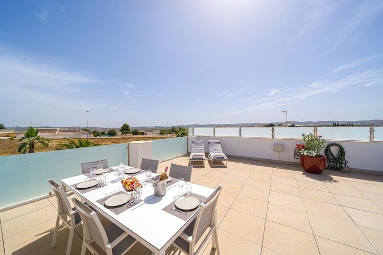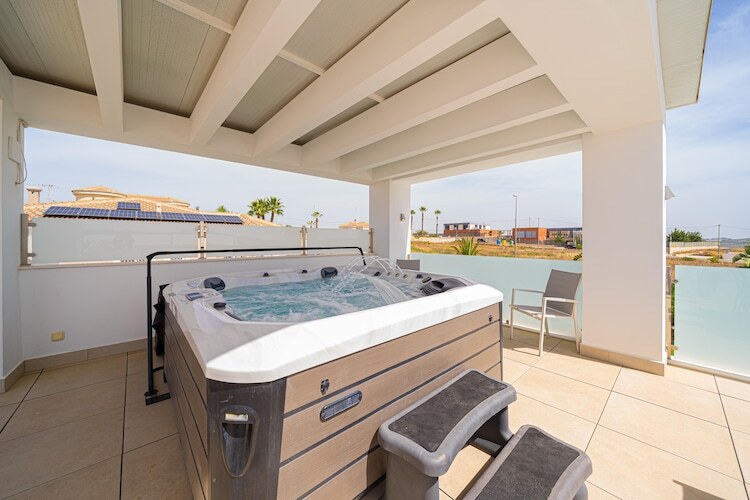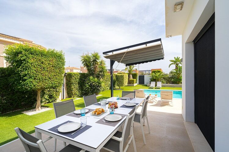 Évadez-vous dans cette splendide villa de 4 chambres à Torremendo, où design moderne et beauté naturelle sereine se marient. Idéale pour les familles ou les groupes jusqu'à 8 personnes, cette élégante villa offre une piscine privée, un jardin luxuriant et une vue panoramique sur le réservoir voisin : l'endroit idéal pour se détendre avec un verre de vin local. À l'intérieur, la villa dispose d'un mobilier élégant, d'un salon lumineux avec de grandes baies vitrées et de la climatisation. La cuisine ouverte au rez-de-chaussée et la kitchenette pratique au sous-sol facilitent la préparation des repas. Une table de ping-pong ajoute une touche ludique, tandis que la terrasse couverte vous invite à profiter confortablement de repas en plein air. Située à seulement 500 mètres des restaurants locaux et à proximité de Torrevieja (21 km) et d'Orihuela (15 km), la villa offre à la fois tranquillité et accès à des excursions d'une journée animées. Pour plus de confort, la piscine peut être chauffée à 28 °C en mai, juin et septembre moyennant un supplément.
