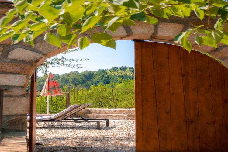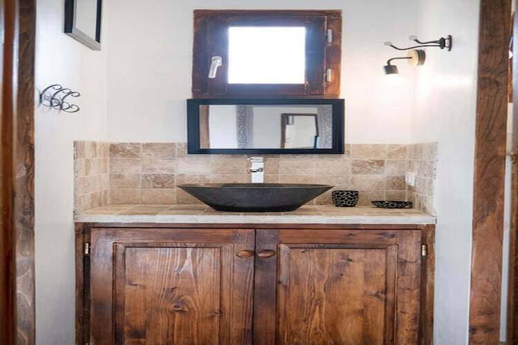 s'effectue sous un passage en pierre vouté, ou vous pourrez déposer vos vélos àl'abri La chambre est , elle aussi entierement vouté ,avec des murs trés épais qui servait d'étable pour les chèvres