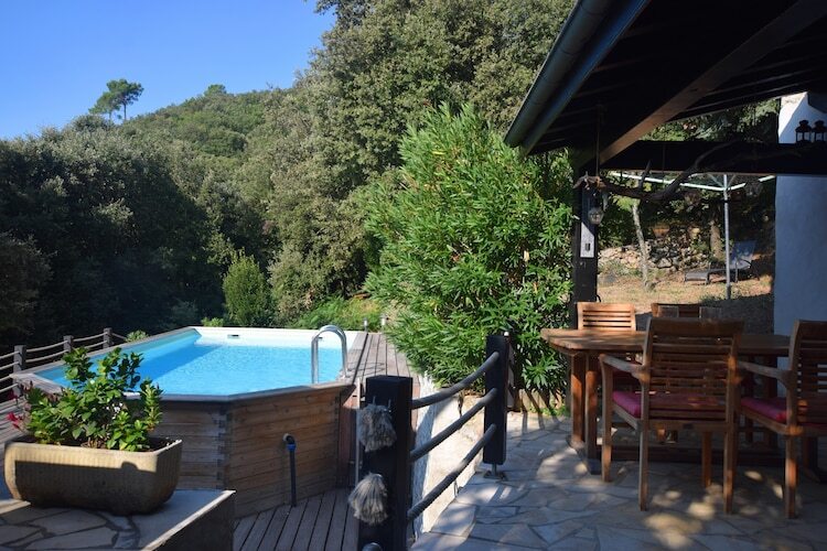 Rez-de-chaussée: (Salle de séjour(TV, cheminée, Lecteur DVD, installation stéréo), cuisine/salle à manger(table, bouilloire, cafetière/percolateur, four/micro-onde combinés, lave-vaisselle , combinaison réfrigérateur/congélateur), chambre(2x lit simple), salle de bains(douche, lavabo), WC, réserve) Au 1er étage: (chambre(lit double), chambre(lit double), palier(canapé-lit double)) lave-linge , chauffage, terrasse, jardin, mobilier de jardin, barbecue(gaz), chaises longues, piscine(privé, 7 x 4 m., ouvert de 1/2 Avr jusqu'à (inclus) 1/2 Sept), table à repasser