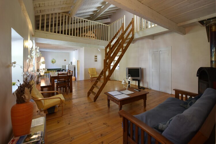 Rez-de-chaussée: (cuisine ouverte(micro ondes, lave-vaisselle , combinaison réfrigérateur/congélateur), salle à manger-salon(TV, poêle(bois), Lecteur DVD), chambre(2x lit simple), chambre(Lit superposé), salle de bains(douche, WC)) entre deux: (lit double(couette 2 personnes)) cafetière/percolateur, four, réfrigérateur, congélateur, lave-linge , chauffage(électrique), terrasse(couverte), terrasse(privé), jardin(partagé avec d'autres clients), mobilier de jardin, barbecue, piscine(partagé avec d'autres clients, 12 x 5 m., ouvert de 1/2 Mai jusqu'à (inclus) 1/2 Oct)