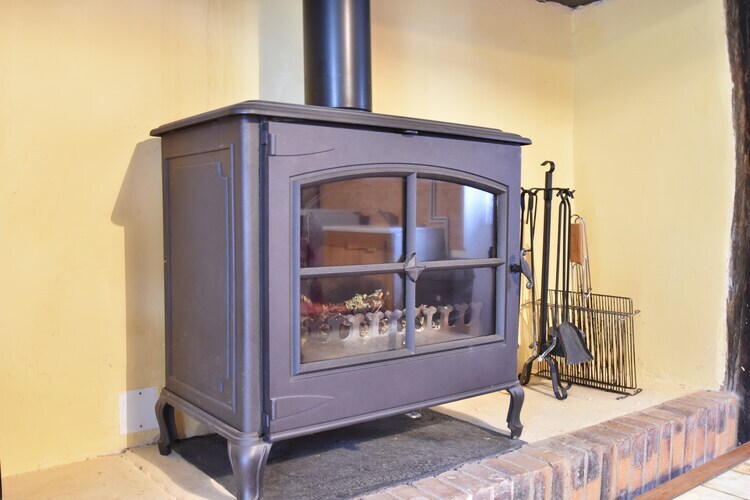 Salle de séjour(TV, poêle(bois), coin salon), cuisine ouverte(table, bouilloire, plaque de cuisson, cafetière/percolateur, four, micro ondes, réfrigérateur), chambre(lit double), salle de bains(douche, WC), terrasse, jardin(privé, 6 hm2), mobilier de jardin, barbecue, lit d'enfant, chaise haute