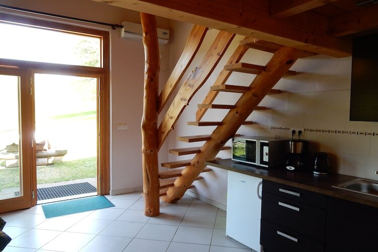 Rez-de-chaussée: (cuisine(plaque de cuisson(induction), four/micro-onde combinés, réfrigérateur), salle à manger-salon(TV(satellite, chaînes de télévision allemandes)), chambre(lit double(140 x 190 cm)), salle de bains(douche, WC, lave-linge )) Au 1er étage: (mezzanine(Lit double ou 2 x lit simple)) lave-linge , chauffage(électrique), climatisation, jardin(privé, 150 m2), mobilier de jardin, barbecue, chaises longues, lit d'enfant, chaise haute