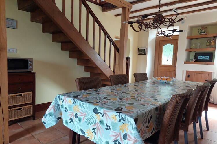Cette belle maison de vacances indépendante à Sussac a été rénovée avec soin. Ses poutres apparentes et ses planchers d'origine lui confèrent un caractère authentique. Située sur un vaste terrain de 6 000 m² au fond d'une impasse tranquille, elle offre une intimité et une tranquillité absolues. Idéale pour une famille ou un groupe de six personnes, vous pourrez vous détendre tout en admirant la vue imprenable sur les bois et les collines environnantes, ainsi que sur la piscine d'eau salée scintillante depuis les terrasses. Nature et attractions locales