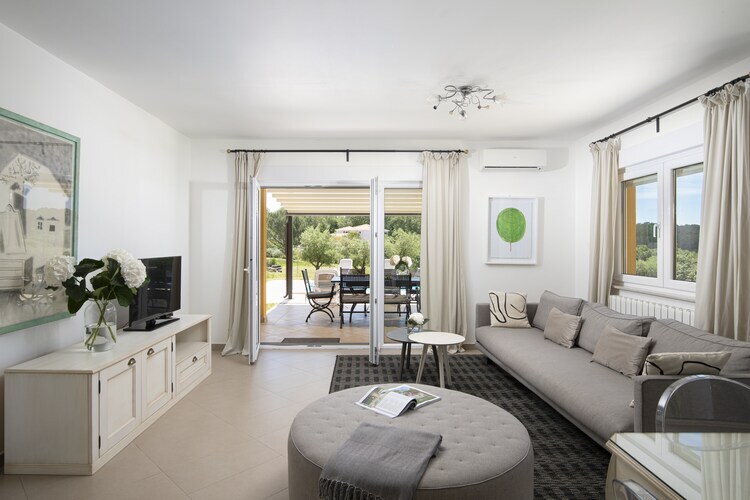À l'intérieur, la villa comprend un spacieux salon/salle à manger avec télévision par satellite, table à manger et climatisation, une cuisine ouverte entièrement équipée avec cuisinière à gaz, cafetière, four, micro-ondes, lave-vaisselle et réfrigérateur-congélateur, ainsi que quatre chambres, deux avec lits doubles et deux avec lits jumeaux, toutes climatisées pour votre confort. Les salles de bains comprennent une douche hydromassante, un bain à remous, un lavabo, des toilettes, un bidet et un lave-linge, pour une expérience vivifiante. Des jeux, un lit enfant et une chaise haute sont également à votre disposition, ce qui en fait un lieu idéal pour les familles.