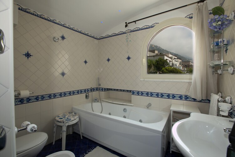 LOasi Blu est un appartement fantastique, au troisième étage, dans les environs de la baie de Praia, la plage la plus importante de Praia, offrant différents restaurants et petits bars. Vous pourrez y prendre le bateau ou un canot-taxi qui vous emmènera vers Capri, Amalfi et Positano. Lappartement occupe un position stratégique, près dun arrêt de bus qui va à Positano et à Amalfi. Le centre de Vettica di Praiano ne se trouve quà 15 minutes à pied de lappartement. LOasi Blu a été récemment rénové et meublé avec beaucoup de goût au moyen de beaux meubles antiques. Vous y trouverez une grande terrasse de 20 mètres carrés avec vue panoramique sur la mer qui sétend de Conca Dei Marini jusquà Capo Sottile. Les deux salles de bains sont aménagées en céramiques colorées de Vietri. Dans une des salles de bains, vous pourrez vous détendre en profitant du jacuzzi. Lappartement nest accessible que par un escalier de 45 marches et il ny a pas dascenseur. Lemplacement de parking se trouve sous le bâtiment.
