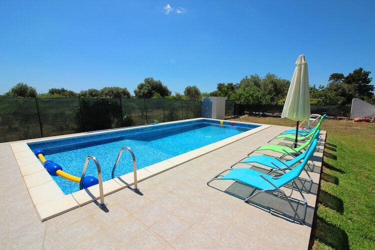 Rez-de-chaussée: (Salle de séjour(canapé-lit double, TV(satellite), table(8 personnes)), cuisine/salle à manger(plaque de cuisson, four, micro ondes, combinaison réfrigérateur/congélateur), chambre(lit double), chambre(lit double), chambre(2x lit simple), salle de bains(douche, lavabo, WC, bidet), véranda) cuisinière à bois, douche(extérieur), terrasse, jardin(privé, clôturé), mobilier de jardin, barbecue, parking, piscine(privé, 10 x 5 m., ouvert de Mai jusqu'à (inclus) Oct)