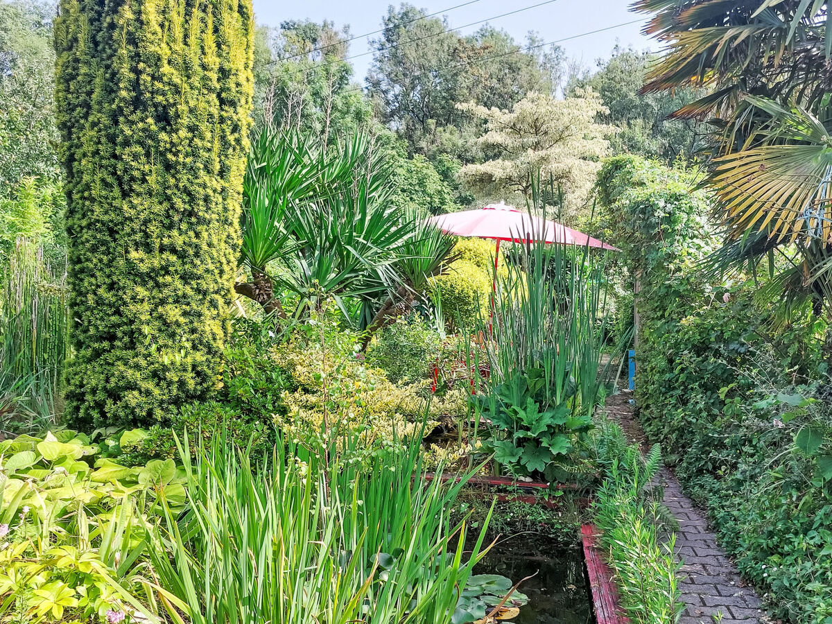 A usage privé: jardin 500 m2 avec plantes et arbres, étang, place de parking sur le terrain.