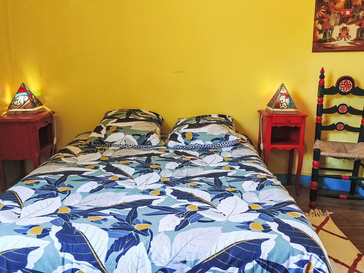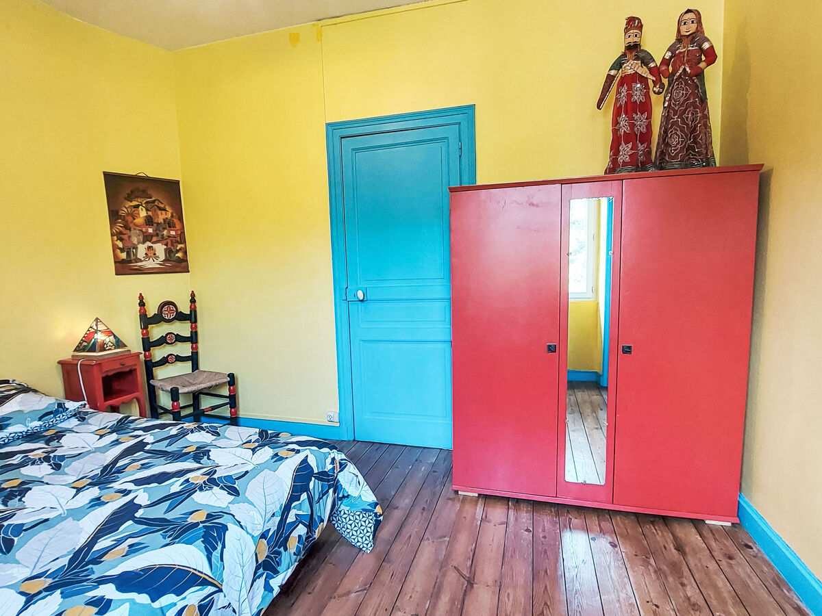 À l'étage supérieur: chambre avec passage avec 1 grand-lit (140 cm, longueur 190 cm).