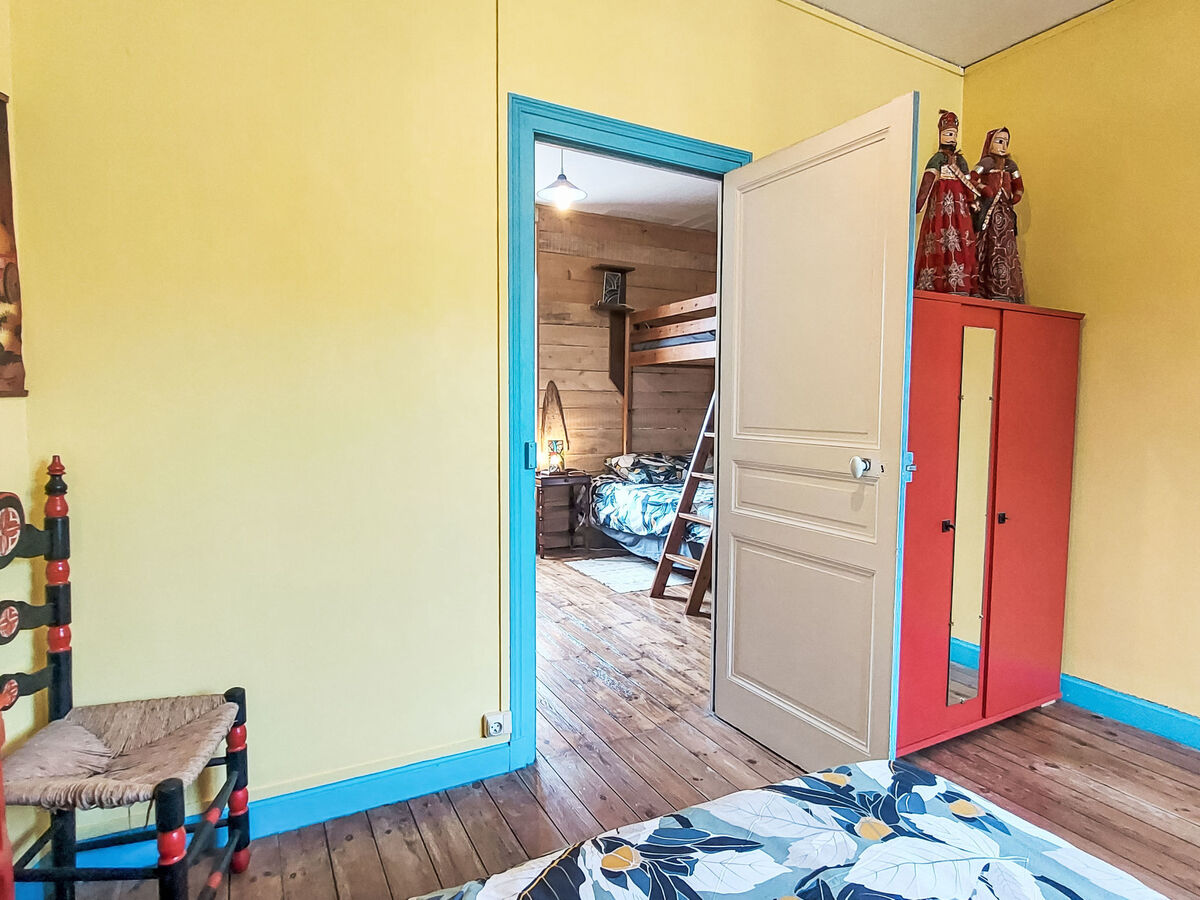 Pièce en enfilade avec 1 x 1 lits superposés (90 cm, longueur 190 cm), 1 grand-lit (140 cm, longueur 190 cm).