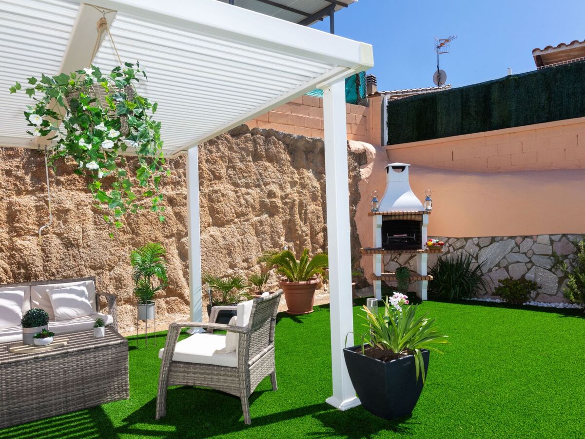 Douche extérieure, jardinet, terrasse (200 m2), meubles de jardin.