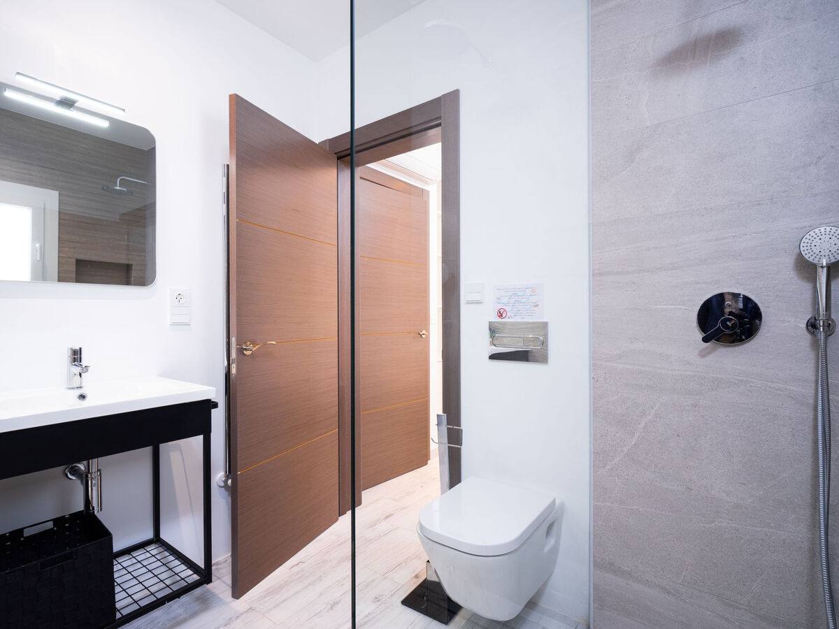 1 chambre avec 1 lit double, douche/WC, air-conditionné et volet roulant électrique.