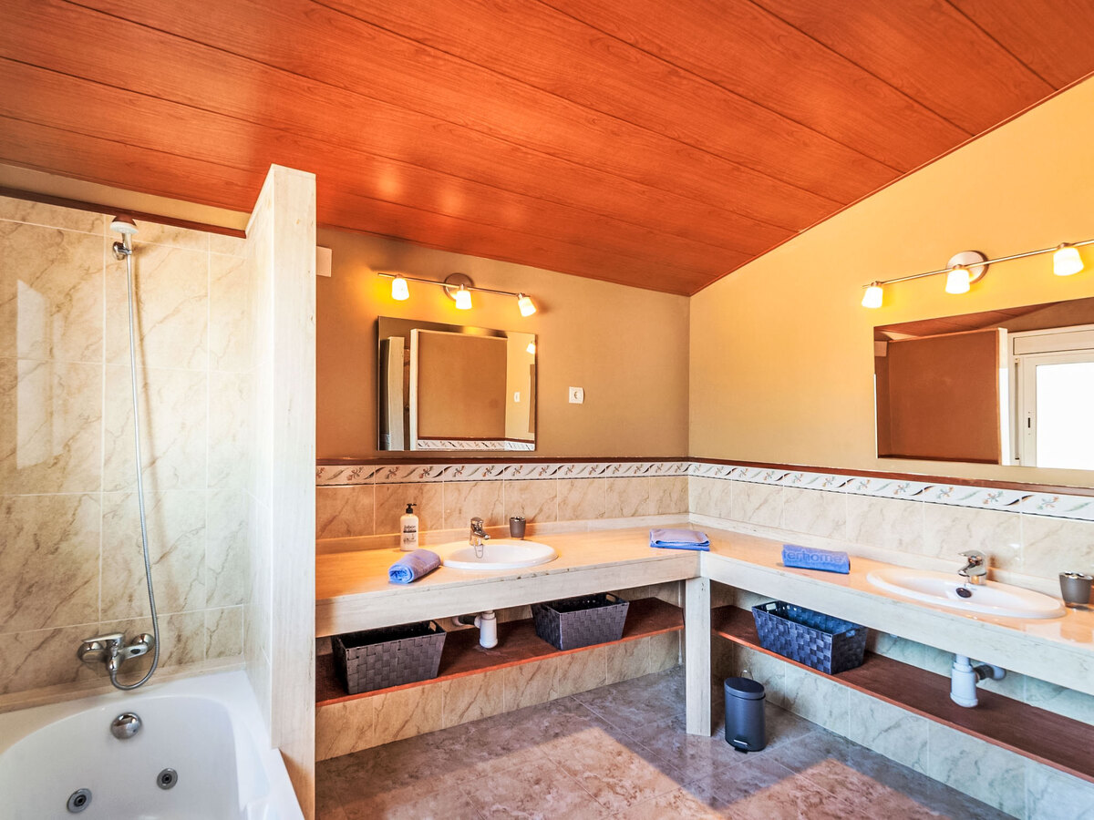 À l'étage supérieur: 1 chambre double avec 1 lit (80 cm, longueur 190 cm), 1 grand-lit (160 cm, longueur 200 cm), bain/bidet/WC.