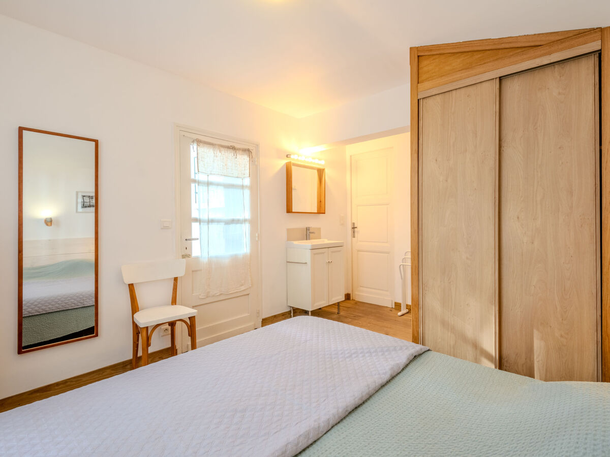 1 chambre avec 1 grand-lit (160 cm), douche.