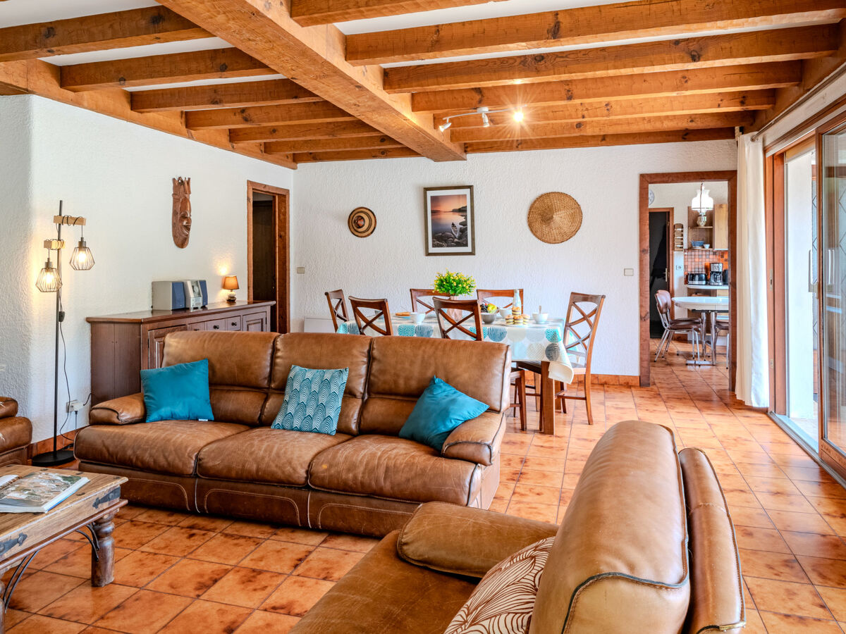 Séjour/salle à manger avec TV (satellite) et chaînes de TV internationales (écran plat), chaîne stéréo.