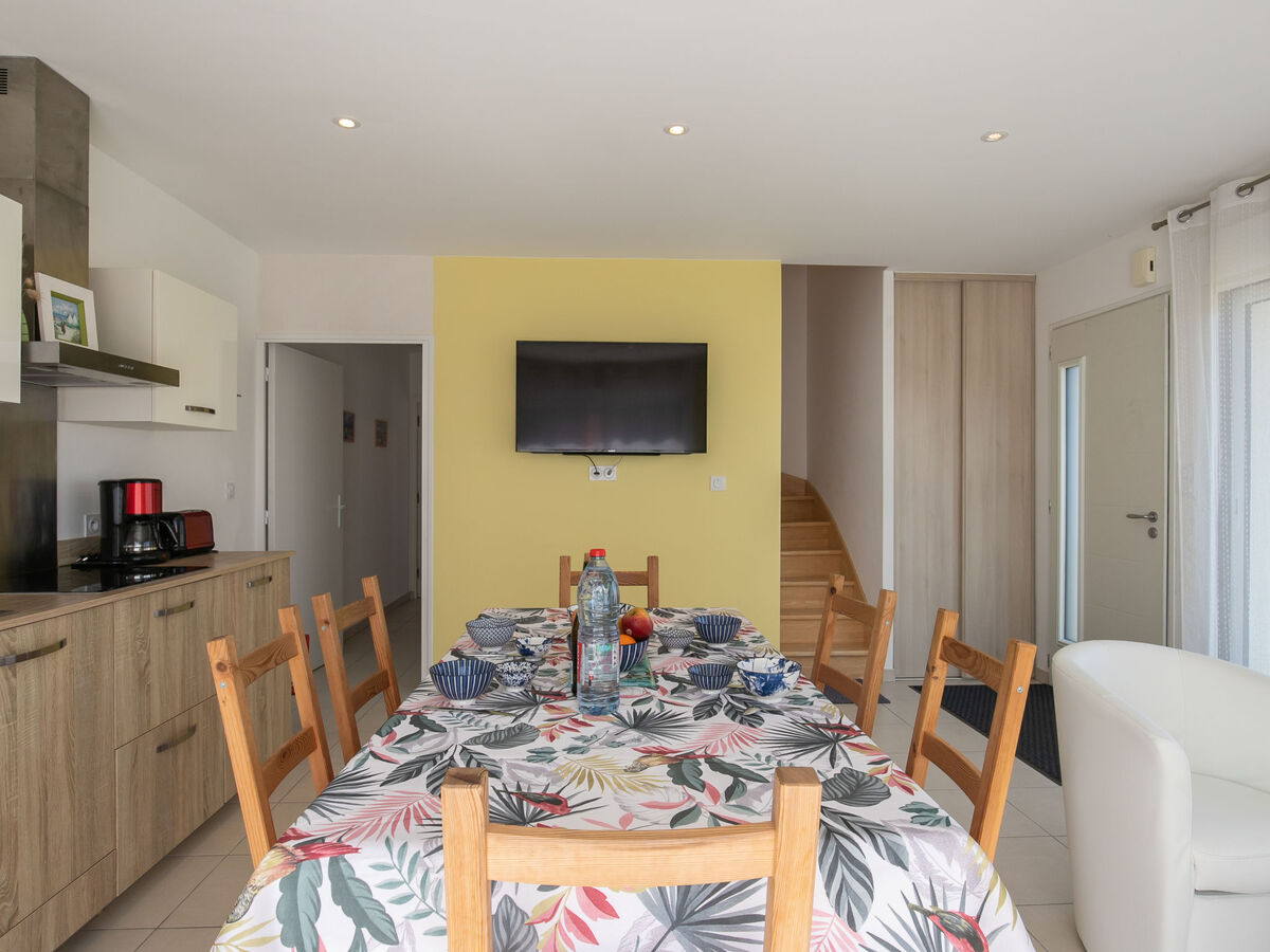 Clair, aménagement agréable: séjour/salle à manger avec table pour les repas et TV (satellite).