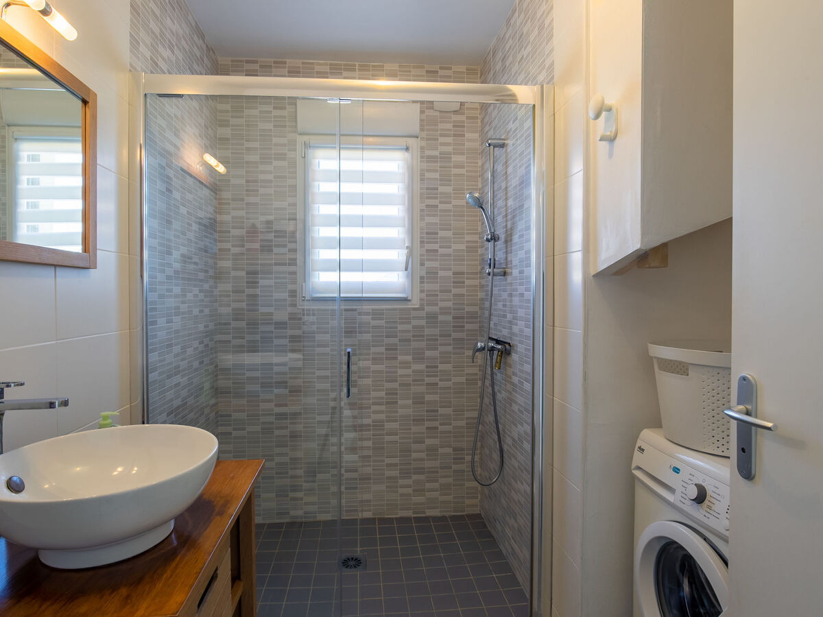 Cuisine ouverte (four, lave-vaisselle, 3 plaques à induction, grille-pain, bouilloire électrique, micro-ondes, congélateur, cafetière électrique).