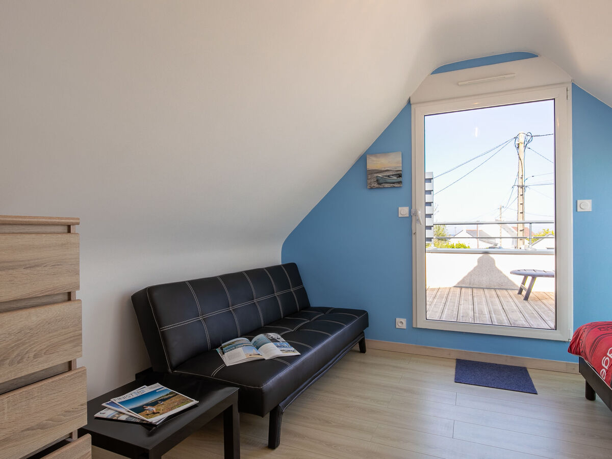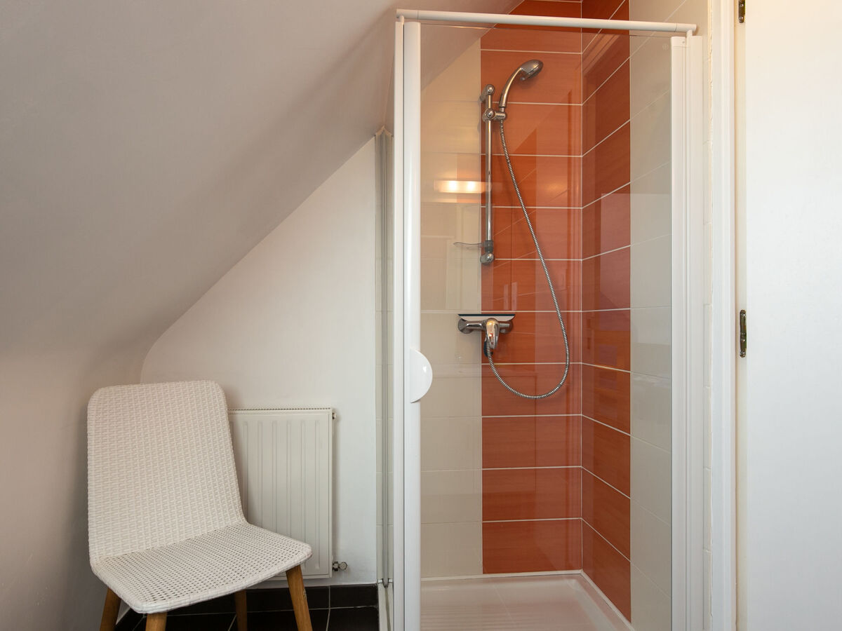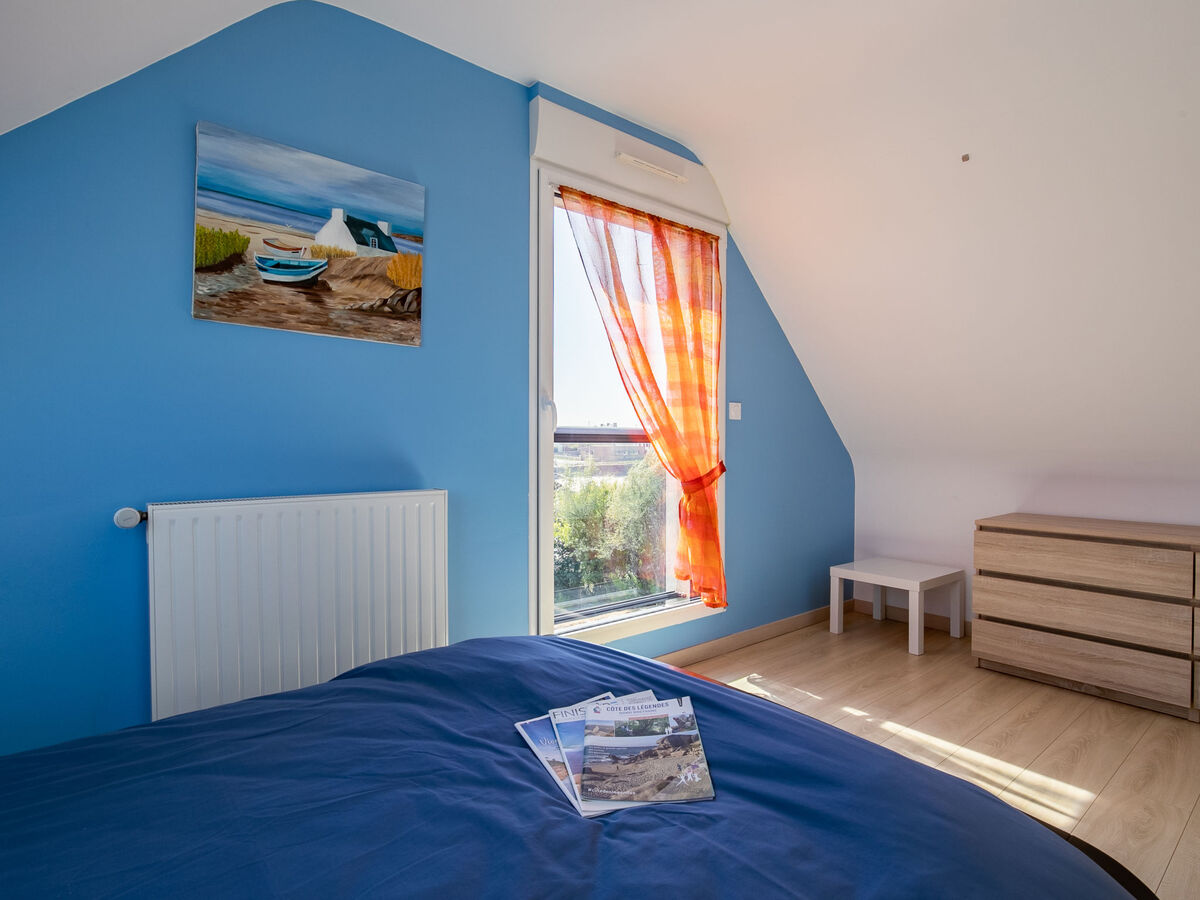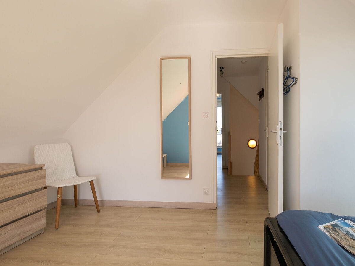 À l'étage supérieur: 1 chambre, mansardée avec 1 lit (90 cm, longueur 190 cm), 1 divan-lit (140 cm, longueur 190 cm).