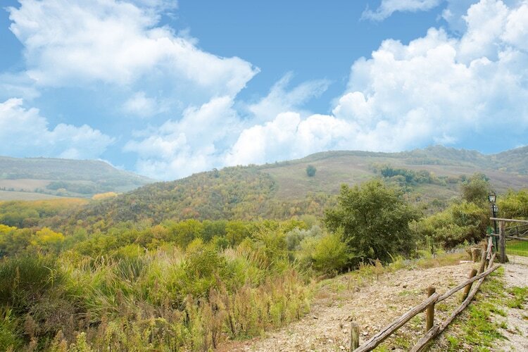 La villa donne sur la campagne et la vallée avec Sermugnano, Castiglione à Teverina et le lac d'Alviano.