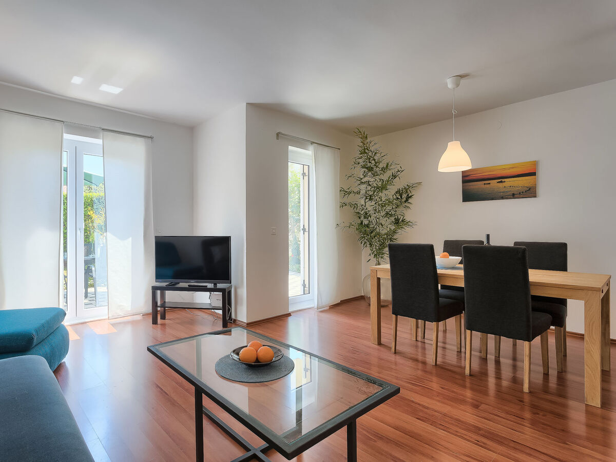 Séjour/salle à manger avec 1 divan-lit double (140 cm, longueur 200 cm), TV (satellite) (écran plat).