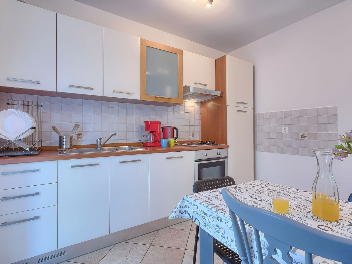 Cuisine (4 plaques de cuisson, four, lave-vaisselle, congélateur, cafetière électrique).