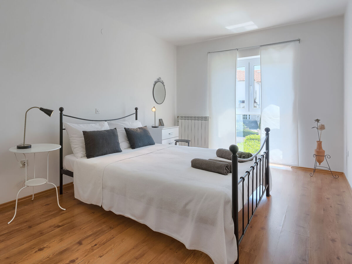 1 chambre avec 1 grand-lit (160 cm, longueur 200 cm).