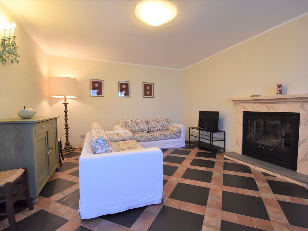 Aménagement rustique et de bon goût: séjour avec cheminée et TV (écran plat).