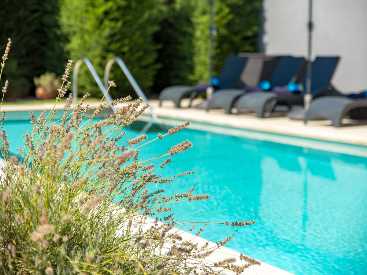 Sortie sur la terrasse, sur la piscine.