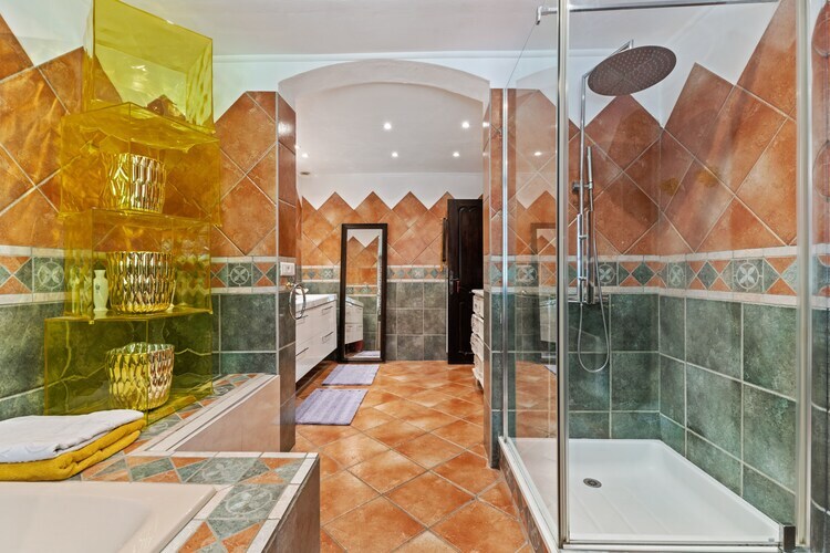 Rez-de-chaussée: (Salle de séjour(TV, coin salon), cuisine/salle à manger(table, plaque de cuisson, cafetière/percolateur(cups), four, micro ondes, lave-vaisselle , combinaison réfrigérateur/congélateur), chambre avec salle de bains(Lit superposé, TV, douche, WC), chambre avec salle de bains(lit double(140 x 200 cm), TV, douche, WC), climatisation) Au 1er étage: (chambre avec salle de bains(lit double(180 x 200 cm), canapé-lit double, TV, baignoire, douche), WC, climatisation) sèche-linge, lave-linge , terrasse(140 m2), terrasse(100 m2), jardin(privé, illuminé, 1000 m2), mobilier de jardin, parking, chaises longues, parasol, piscine(privé, 12 x 6 m.)