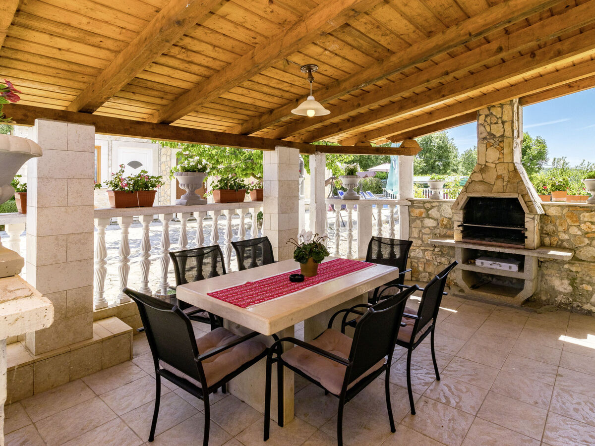 Douche extérieure, terrasse, meubles de jardin, barbecue (balançoire), entretien de la piscine par le propriétaire/jardinier.