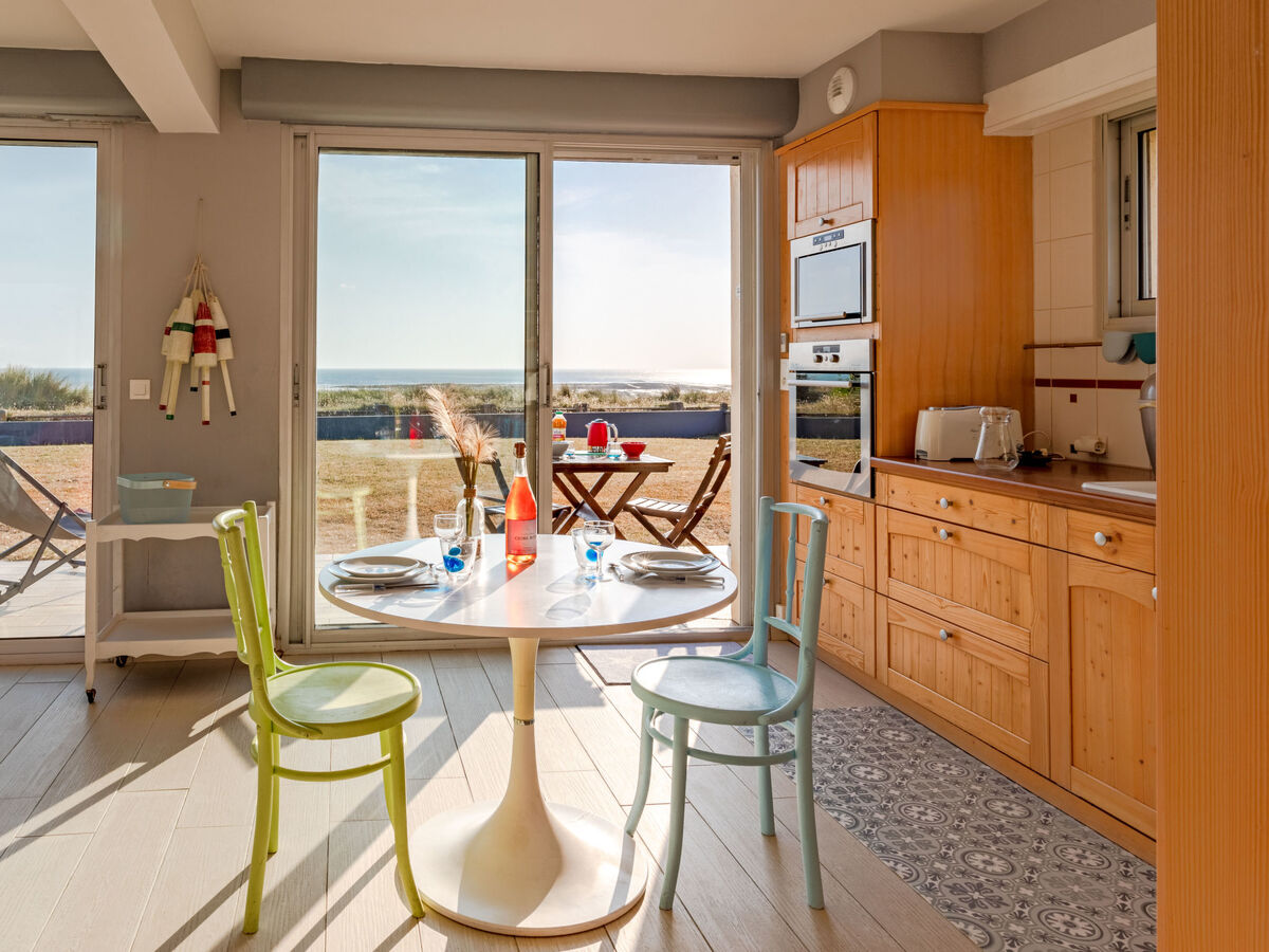 Cuisine ouverte (four, lave-vaisselle, 4 plaques à induction, grille-pain, bouilloire électrique, micro-ondes, congélateur, cafetière électrique).